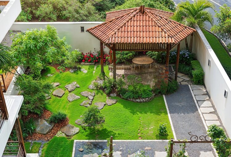 14mẫu thiết kế tiểu cảnh sân vườn mini phù hợp cho những khu vực trước hoặc sau nhà có diện tích 60-120 m2, tận dụng tối đa cách sắp xếp ở khu vực 2 bên góc tường, khiến cho không gian rộng hơn.